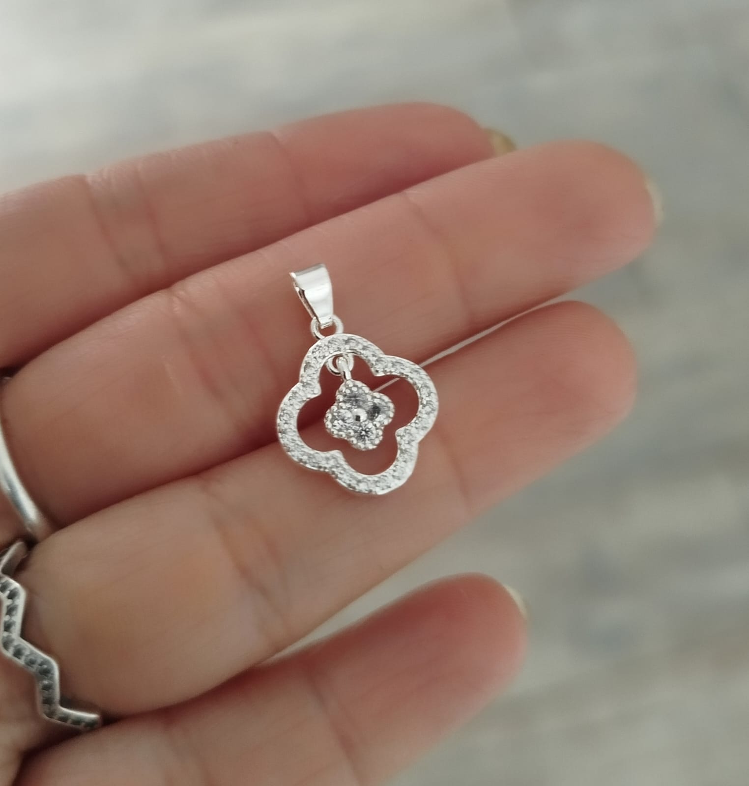 Colgante flor doble micropave 15mm