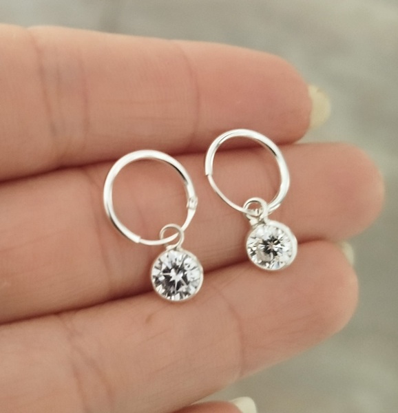 Argollas Lisas con Dije Colgante de Punto de Luz 6mm