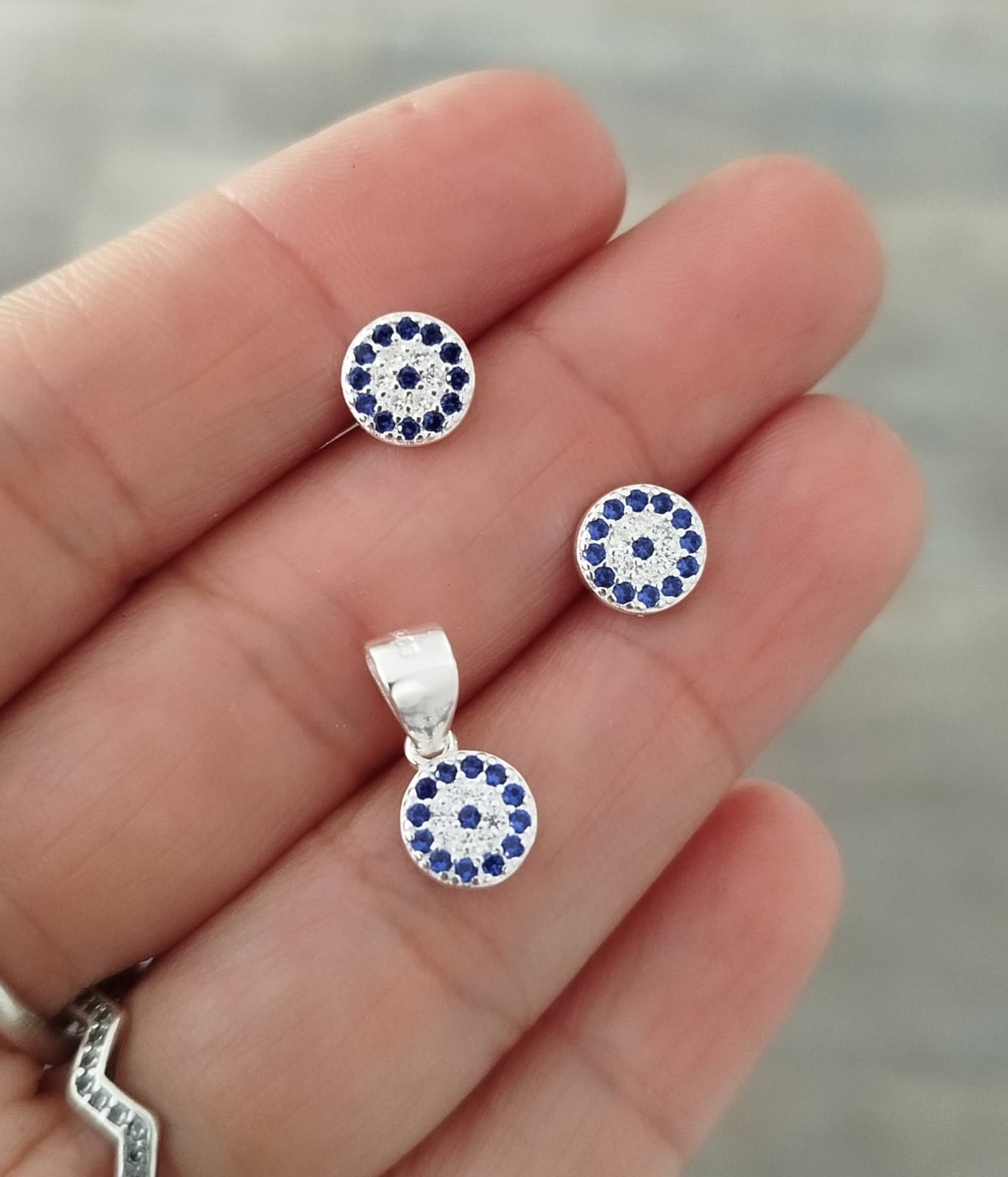 Conjunto aros y colgante Ojo Turco cubics 7mm