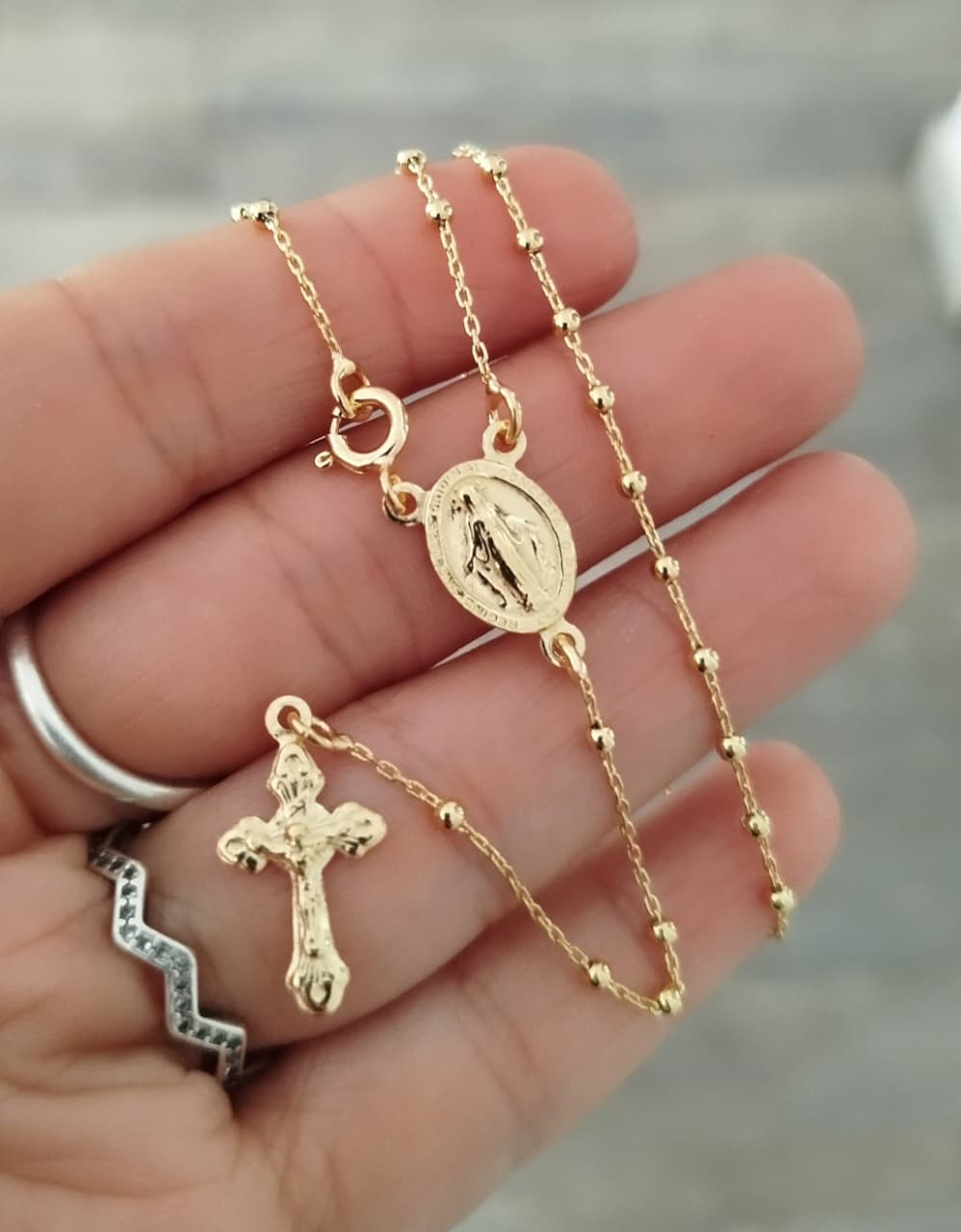 Rosario con la Medalla de la Milagrosa y Bolitas de 2mm . Cruz con Cristo