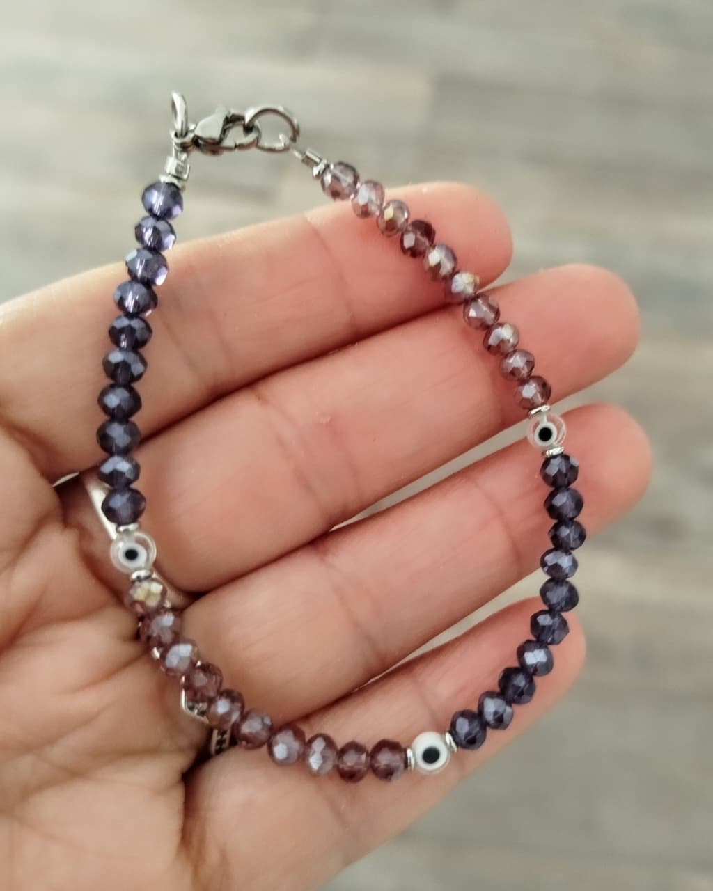 Pulsera cristales violeta 4 mm con Ojo Turco