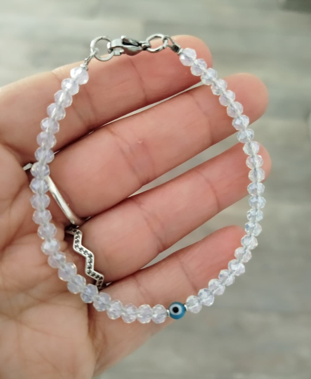 Pulsera cristales blanco lunar 4mm con Ojo Turco