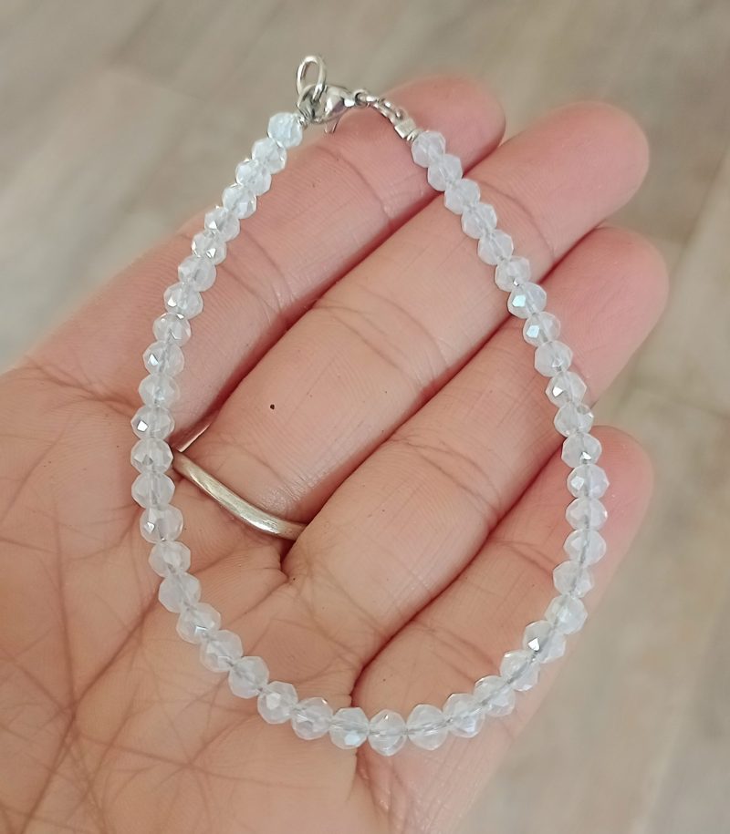 Pulsera cristales de roca blanco lunar 4mm