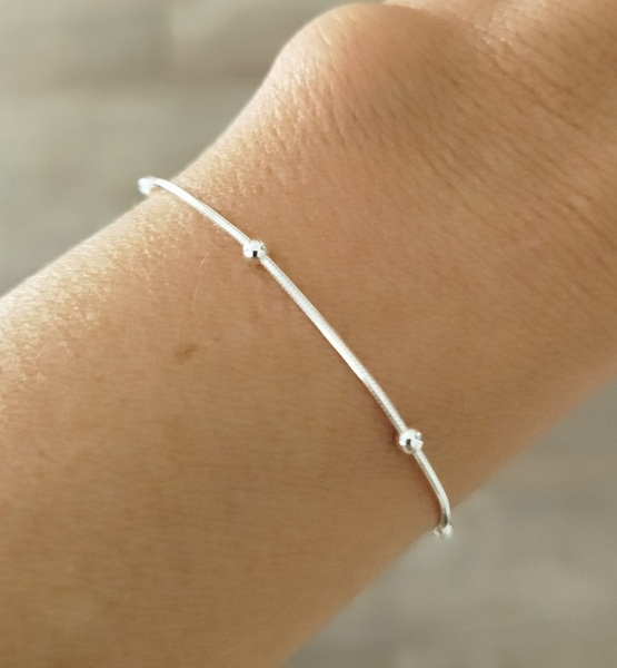 Pulsera cola de ratón cuadrada con bolitas