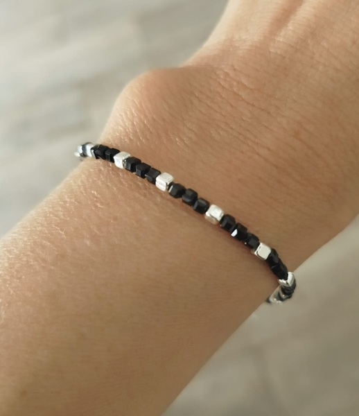 Pulsera de Cristales Cuadrados 2.2mm y Cubos Lisos 2.5mm