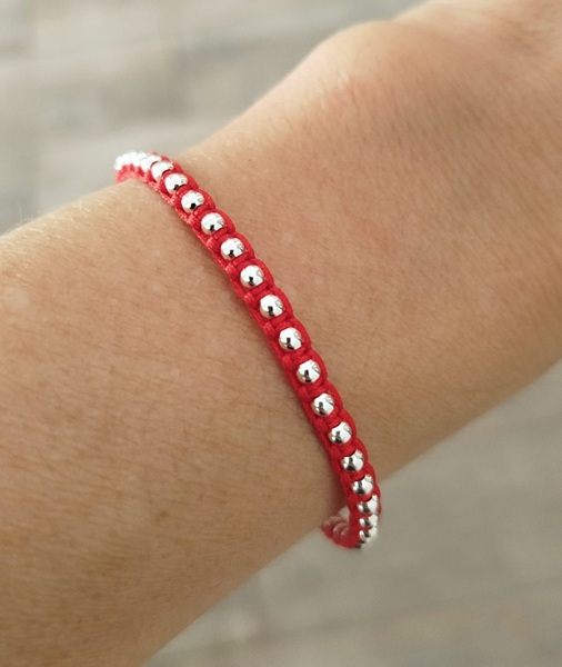 Pulsera Ajustable de Cordón Tejido con Bolitas de 2.5mm